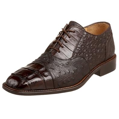 Express your wild side in the Onesto oxford from Belvedere. Its mixture of crocodile and quill ostrich leathers showcase an appreciation of things both refined and exotic, and its particular cushioned insole provides comfort. Dust bag included.