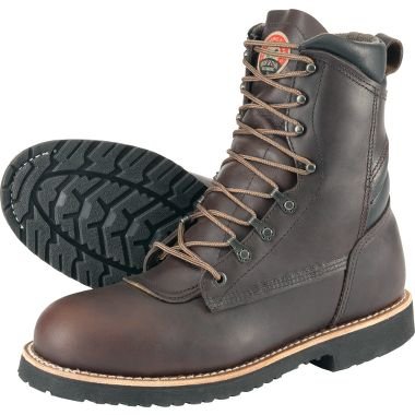 Heavy-duty steel toes make these American-made boots an excellent choice for reliable protection on hazardous work sites. The tough American Pueblo leather uppers resist wear and tear and conform in your feet. Vibram Pioneer rubber soles provide traction and resist common work-site chemicals. Goodyear-welt construction ensures theyll endure many years of wear and tear. Removable ComfortForce footbeds with Venturi air-circulating construction keep feet cool and dry. Electrical-hazard rated. Made in USA. Height: 8". Average weight: 4.9 lbs/pair. Mens sizes: 8-14 D and EE widths. Half sizes to 12.Color: Brown.